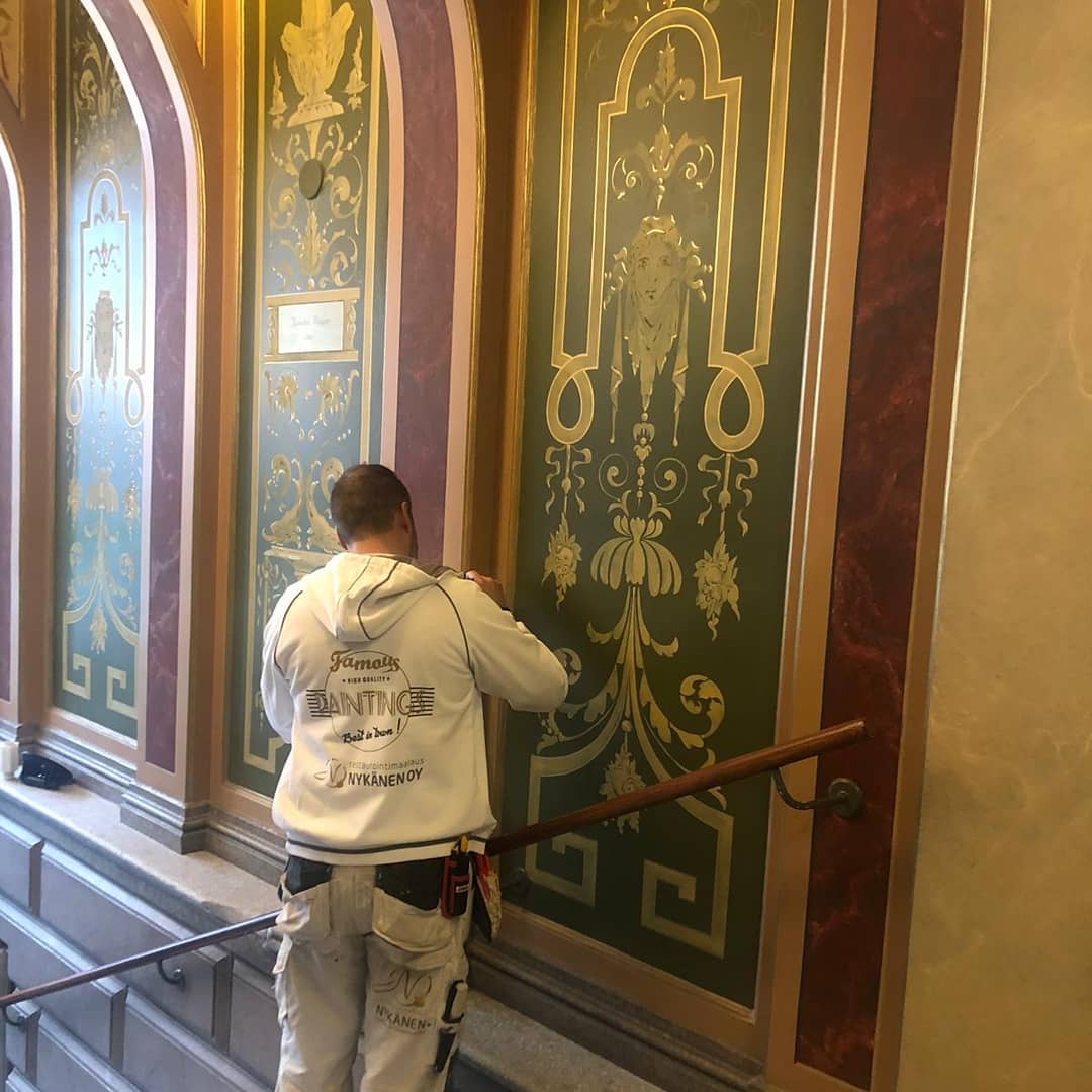 - Eduskuntatalo, Helsinki. Sisäpuoliset restaurointityöt.