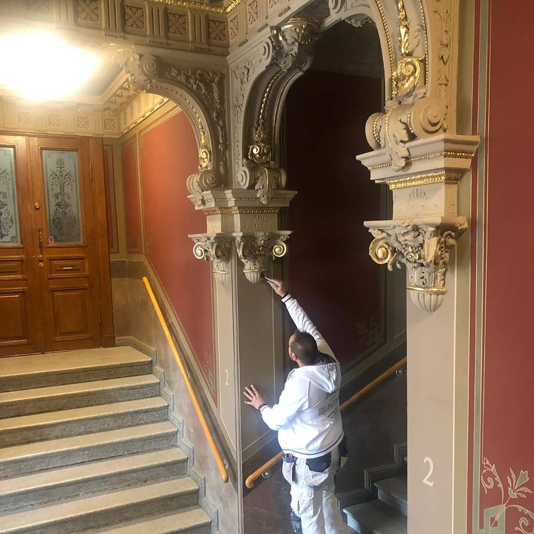 - Kivipalatsi, Lönnrotinkatu 3, Helsinki. Rappukäytävien ja asuinhuoneistojen entisöinti- ja restaurointimaalaukset.