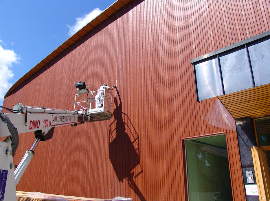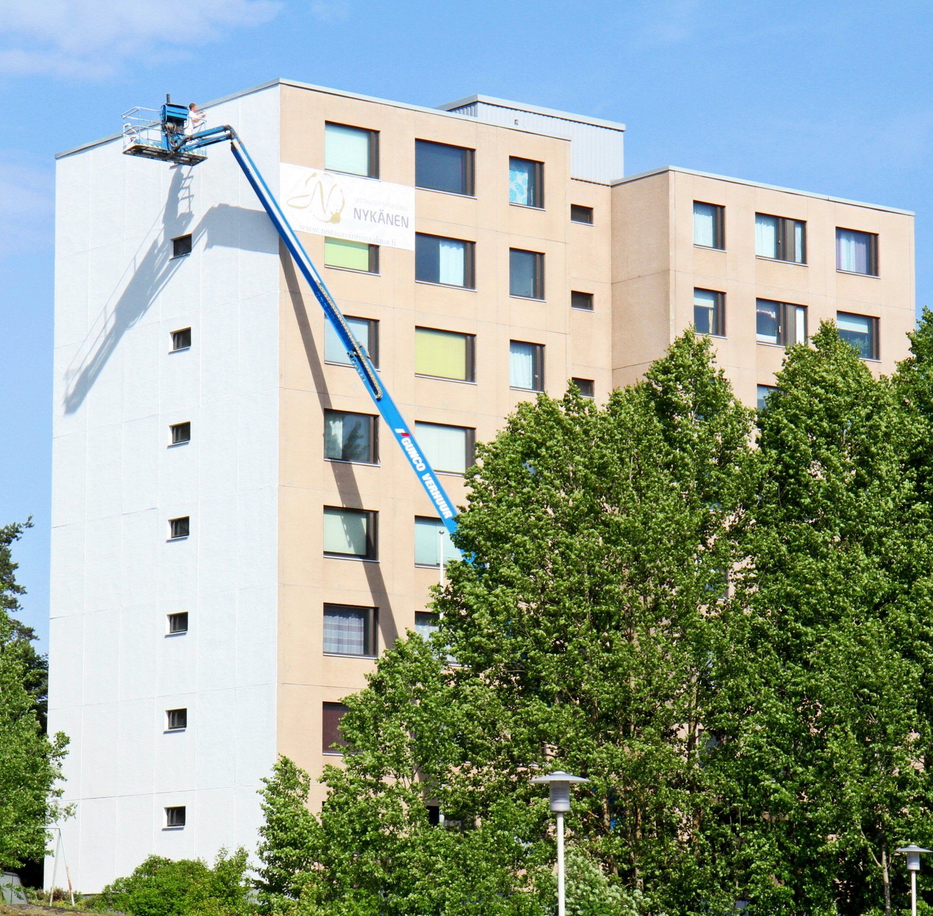 - Kaskenpolttajantie 21, Espoo. Rivitaloyhtiön julkisivumaalaukset ja puukorjaukset.